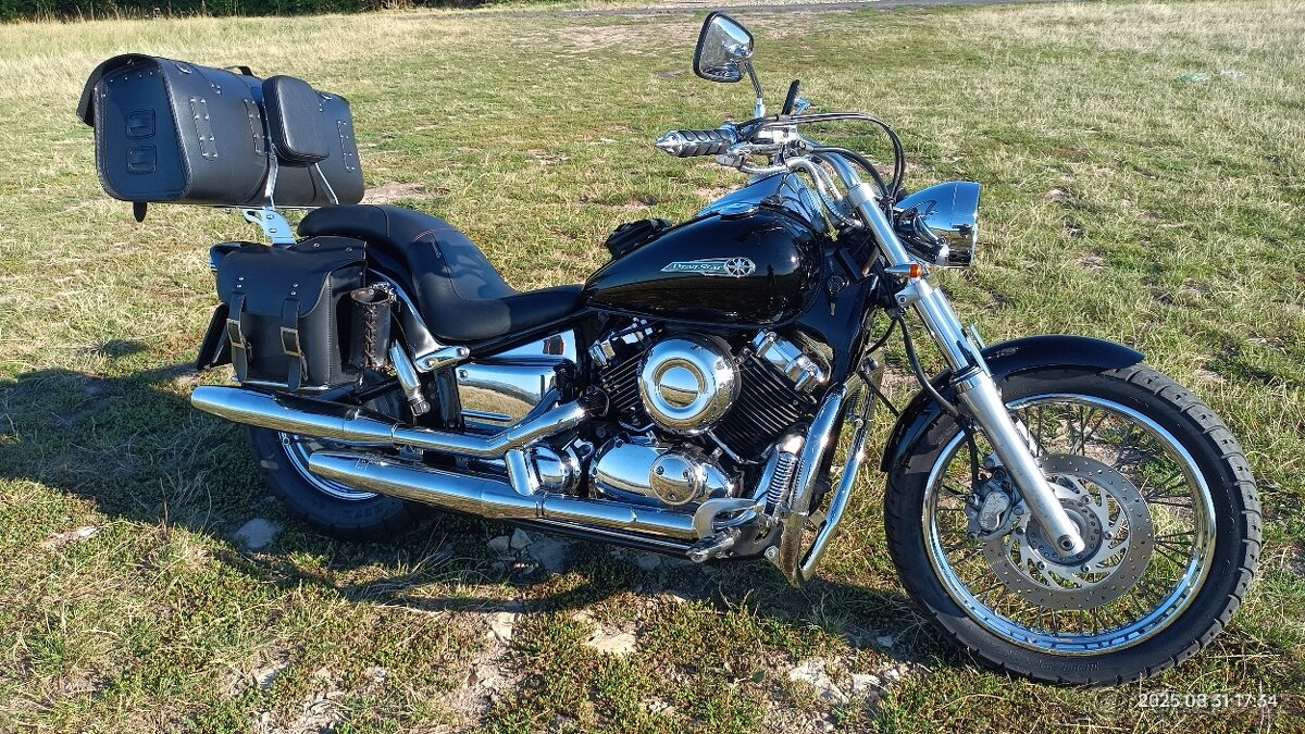 Prodám Yamahu XVS 650 Dragstar v dobrém a udržovaném stavu. Menší kosmetické vady. Doplňky: zadní kufr, boční brašny, držák na láhev, zakázkové sedlo, zadní opěrka, padací rám s předkopy, kožený pás na nádrži s kapsou, hodinky na řídítkách, elektrická zásuvka a další doplňky (stupačky, gripy, řadící páka, chromovaný kryt zadního světla, chromovaný kryt kardanu). Na jaře nový motorový olej a filtr, vyčistění karburátorů ultrazvukem a jejich synchronizace, seřízení vůle ventilů, nový olej v předních tlumičích, nové přední brzdové destičky a zadní brzdové obložení.