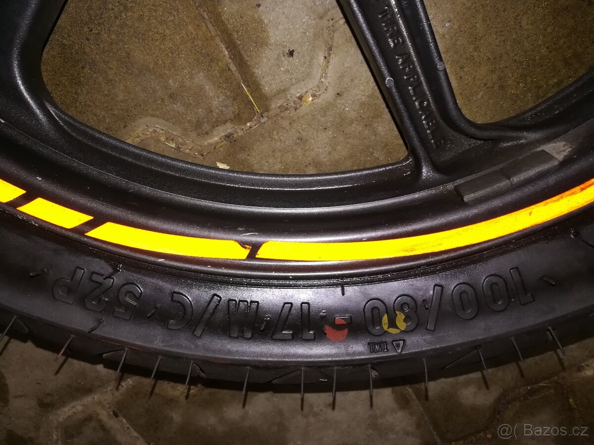 Nabizim sadu litych kol na Hondu. Presny model neznam, ale na disku je vyrazeno Honda 88S.Nalezovy stav. Osobni predani Velka Bites, Brno nebo na trase mezi temito mesty.Piste na mail!