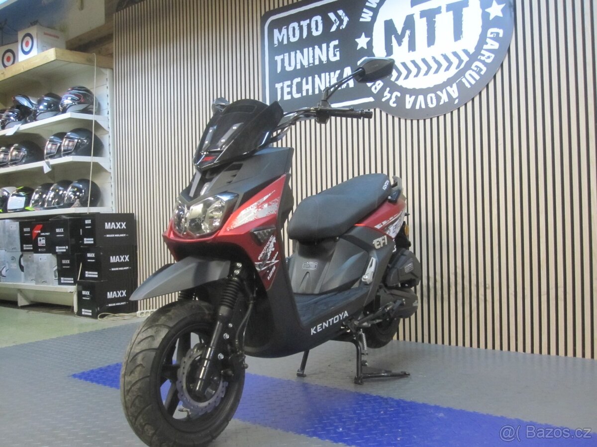 Prodám vínový skútr Kentoya Rush 125 - [10.2. 2026]Prodám vínový skútr Kentoya Rush, r.v. 2021, pravidelně servisovany, TP do 19.4.2027. Velmi dobrý stav, komaxitové zlaté disky, přídavná dolejší světla a mlhovky na samostatný vypínač, přední kryty řidítek, ochrana výfukového potrubí, kufr, držák tab ...