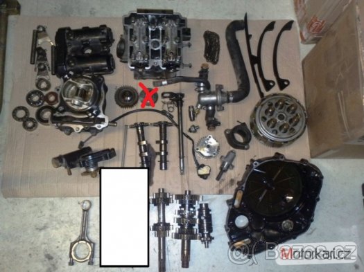 Suzuki SV650 1998-2003 díly z kompletního funkčního motoru a dalšího rozebraného 1998-2003. Cívka alternátoru 1500,- Převodovka komplet 3900,- Ložiska motoru komplet 1000,- Ventilové víko á 500,- Hlava + vačky 3900,- Válec s pístem 3900,- Rozvodový řetěz 400,- Vodítko rozv.řetězu á 300,- Termostat 300,- Ozubrná kola kliky 300,- Spojka komplet 2900,- Hrdlo sání 350,- Tyč řazení 350,- Napínák rozv.řetězu á 800,- Víko spojky 800,- Kolečko převodovky á 900,- Spojková tyčka 300,- Snímač neutrálu 390,- Čidlo tlaku oleje 490,- Víko alternátoru 900,-, Víko spojky 1500,- Zadní světlo 300,- Magneto s volnoběžkou 2900,- Brzdič přední á 800,- Inzerát platí do smazání
