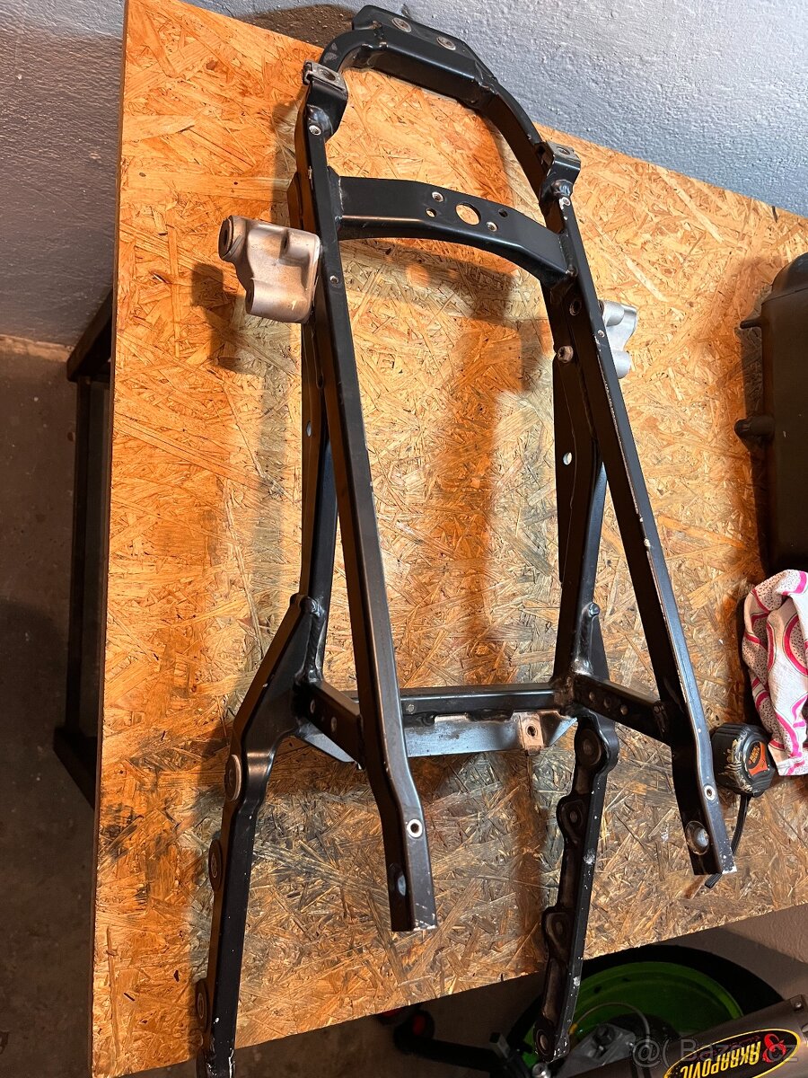 Prodám podsedlový rám z KTM 990 Supermoto R 2009. Rám není úplně 100% rovný, na motorce jsem ho měl roky s tímto poškozením, ale úplně neseděl ůchyt na výfuk na jedné straně a tuším trochu vrchní madlo u sedla. Chtělo by si to s ním malinko pohrát, proto ta cena.