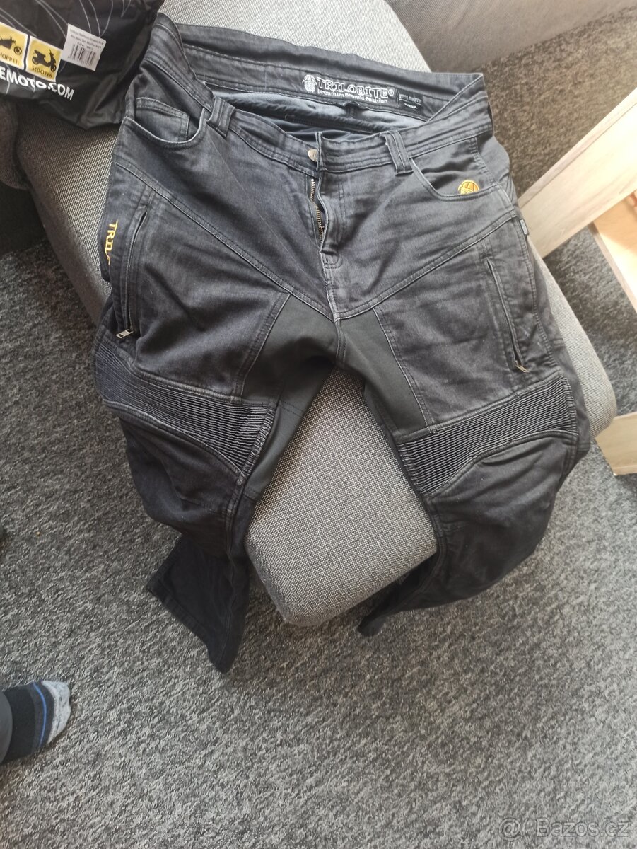 Prodám pánské džíny na motorku Trilobite, s chráničema, velikost na fotce. Původní cena 6000,-