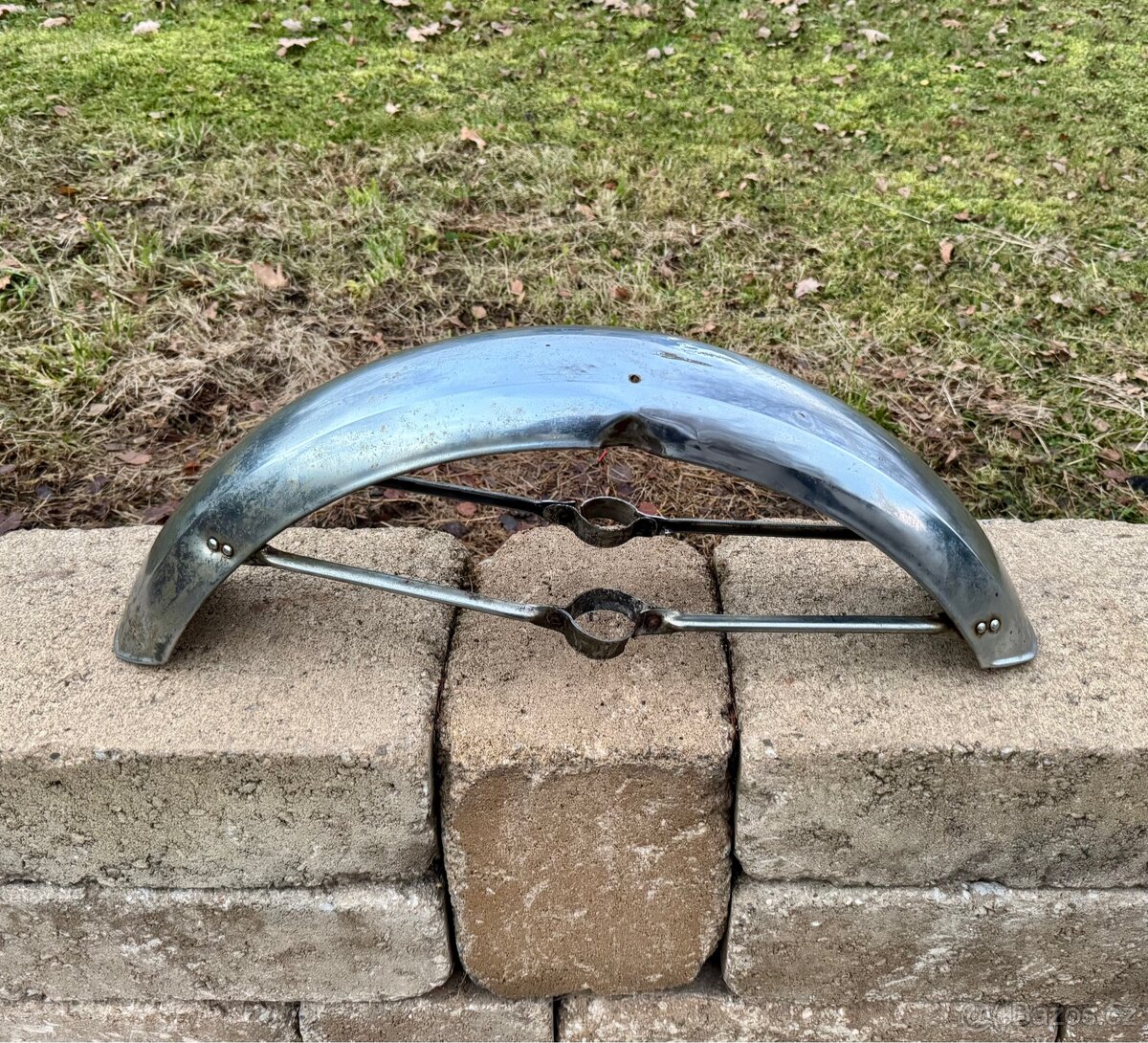 Prodám originální zachovaly přední blatník v původním chromu na Jawa 350 634 a 638. Stav viz foto, v případě zájmu zašlu další. K renovaci bez záruky. Predani Pysely, po dohodě Praha, okolí Benešov nebo pošlu i na dobirku i na Slovensko.