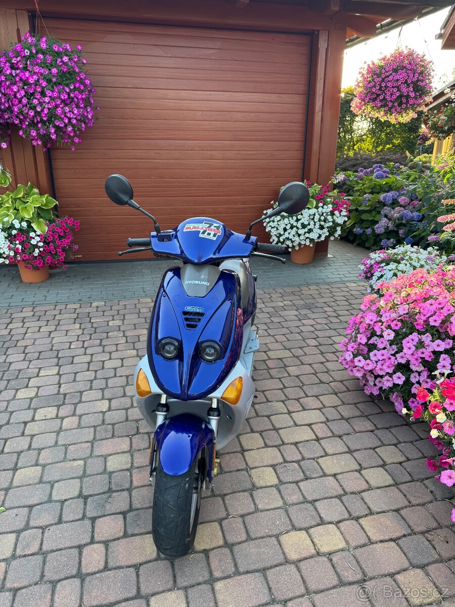 Hyosung SF-50, 49 ccm – 8 000 km, dobrý stav, oba techničáky