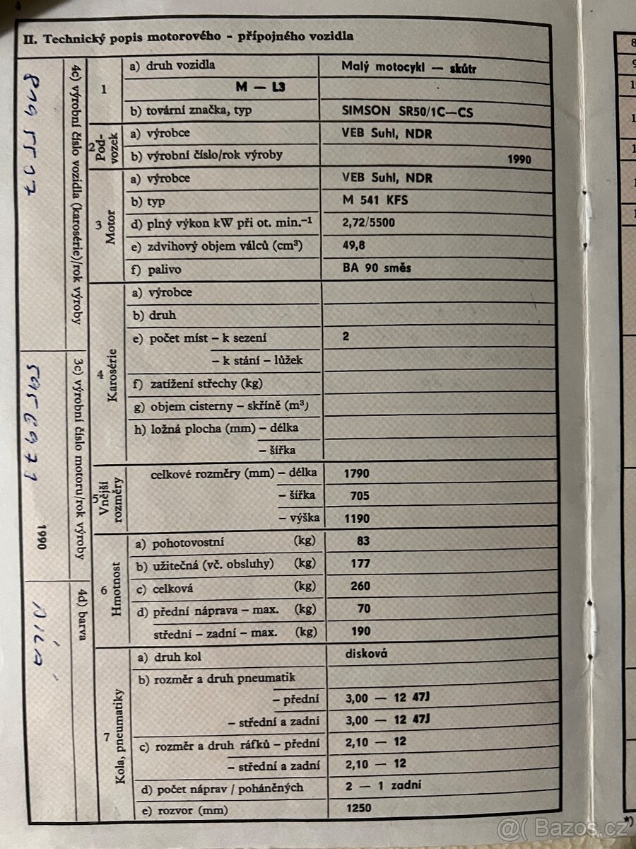Prodám Simson SR 50 , rv 1990 , Spz ano , stk ne , předrenovačni stav .