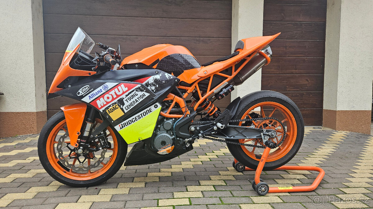 Predám okruhovku KTM RC 390 vo verzii ADAC Cup. Motocykel je v dobrom technickom stave. Olej menený po jednom dni (Motul 300V). Aktuálne vymenený olej, chladiaca a brzdová kvapalina, nová sviečka, vzduchový a palivový filter, nový litiový akumulátor. Moto má upravenú palivovú mapu (Dynojet Power Commander V) + quickshifter, tlmič riadenia, prepákovanie, clip on riadidlá, závodné vrchné okuliare. Pridám ďalšiu kompletnú sadu kapotáži, druhú sadu kolies s kotúčmi a nejaké náhradné diely (rozety, unášač atď.) Viac info po tel. Cena 3700euro