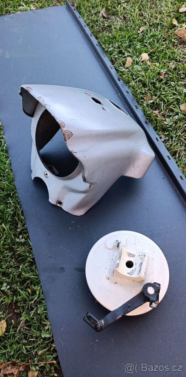 Po domluvě mám k tomu i nádherně udělanou,kapličku světla Pionýr originál,jen je rozšířena,takže zachováte vzhled Pionýra,ale budete mít,na tom tlumiče ze simsona,ty už nemám jsou prodané,závit na krku absolutně v pořádku,podkova je pod vrchní brýle na uchycení krku,plus ještě štít kola,upraveny na pionýra ze Simsona,navařený kus,aby to šlo na Pionýra plus osu kola.
