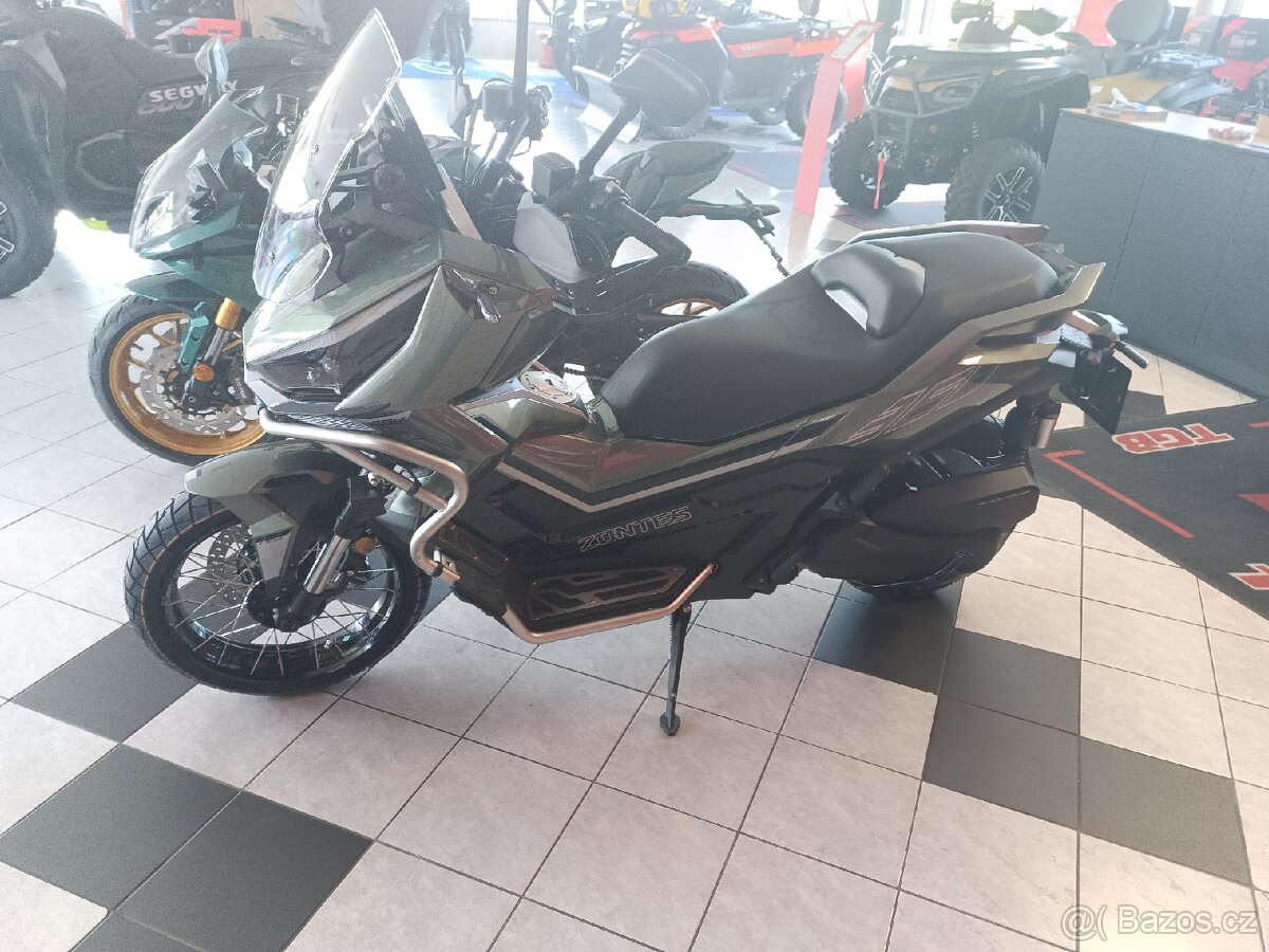 Novinka - nový adventure scooter Zontes 368G nabitý nejmodernějšími technologiemi. Skladem v zelené barvě viz. poslední foto - ihned k odběru.