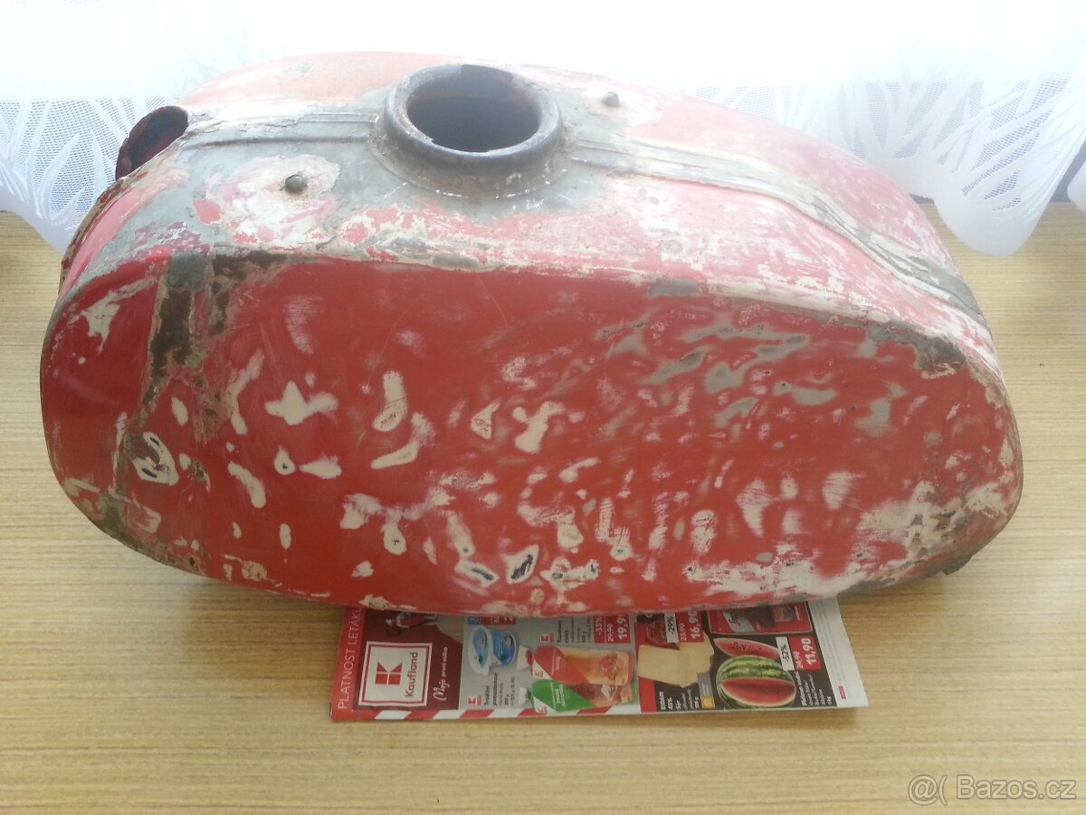 Nabízím palivovou nádrž napadenou kutilem na opravu nebo nějakou stavbu. Původně jawa 350 634. Uvnitř pěkná. Neteče. Cena 650 Kč. Pardubice