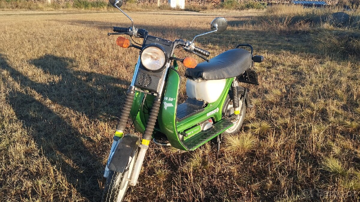 Prodám Simson sr50 převrtaný na objem 80ccm s větším výfukovým vedením a karburátorem 16mm. Zapalování VAPE, nedávno nová elektroinstalace, pár let po laku a celkové renovaci.
