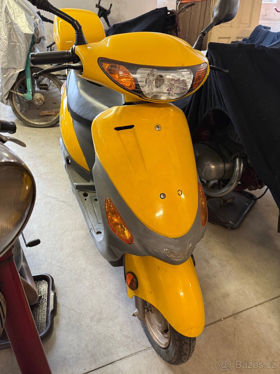 Prodám motocykl- skútr Yuki 50 ccm. Motocykl provozoval můj otec, má lehké odřeniny. Je třeba ho zprovoznit. Najeto 5966km. SPZ. Propadla STK. Super cena 3500 Kč.