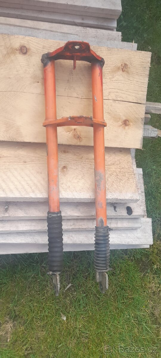 Prodávám dvoje staré vidlice, sedačku, duše a další díly. Součástí je také štítek.