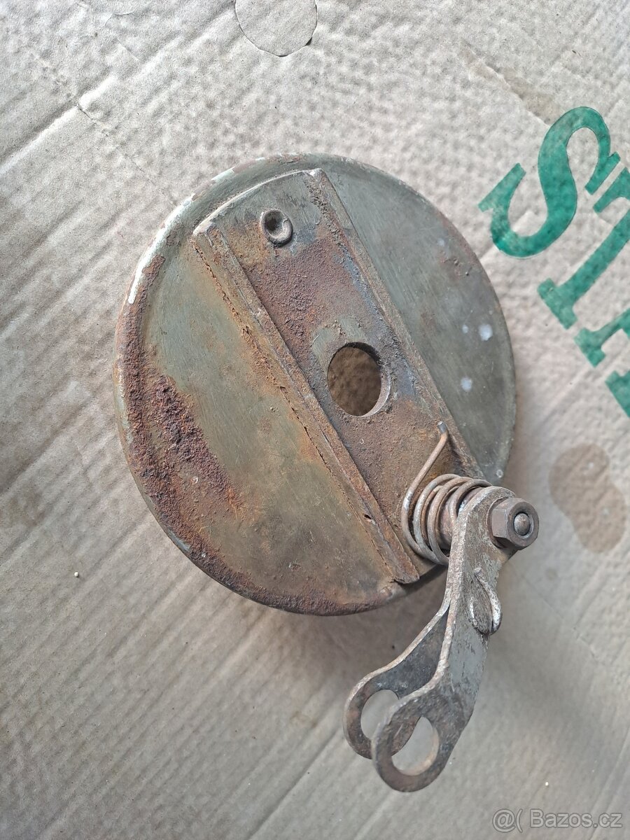 Nabízím štít zadní brzdy z péráka průměr 150 mm. Pakny mají obložení KO, ale dají se renovovat.