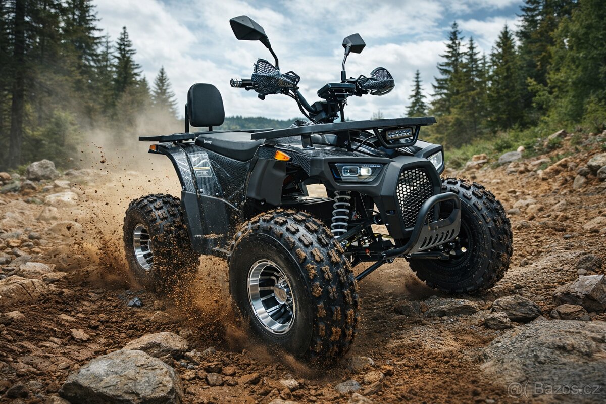 Dětská čtyřkolka o výkonu 1500W na 8” kolech, délka 150cm, šířka 110cm, výška sedla od stupaček 45cm, dojezd až 40 km, s dálkovým ovládáním, pro 6-15 leté dítě (120-160cm) od 1790 Kč/den