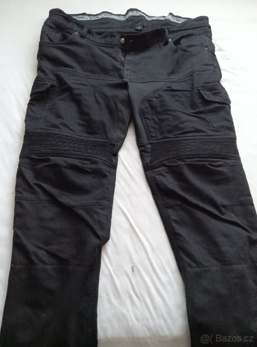 Prodám kalhoty na motorku,používané krátce.Vycpávka na bokách a kolenou s možností připnout k bundě.