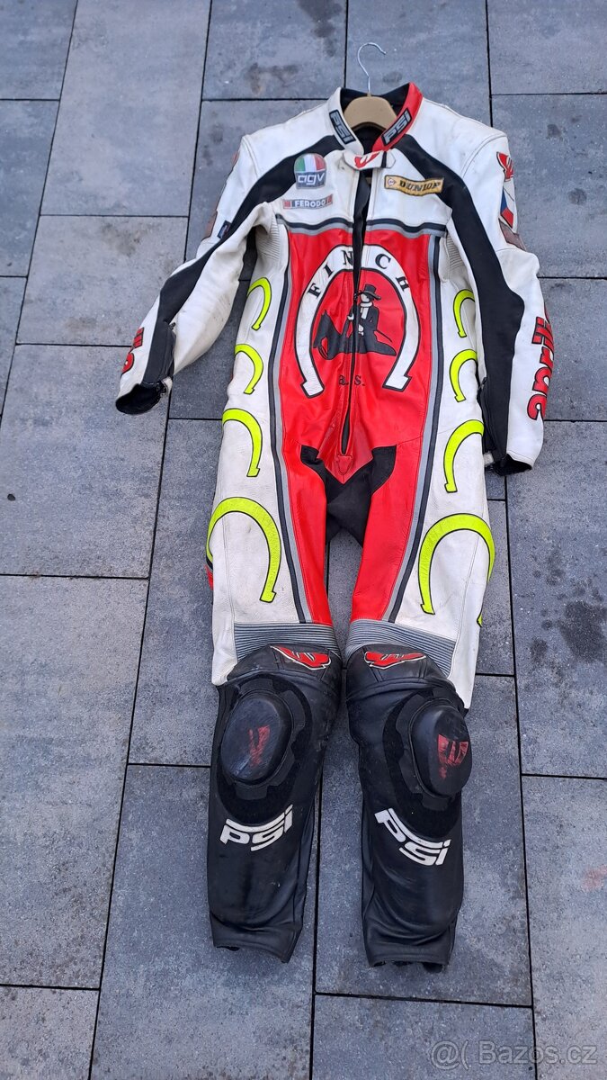 Kombinéza PSI vel. 54 - [29.12. 2025]Kombinéza PSI Hubík, tuším že model "tango". Velikost 54 (postava cca 175-180 a 90kg). Takový ten obvyklý příběh, vyžral jsem se z ní a dávno mám jinou. Je fakt stará, ale je to poctivá česká výroba, do začátku, na okruhy, zkrátka ještě dobře poslouž ...