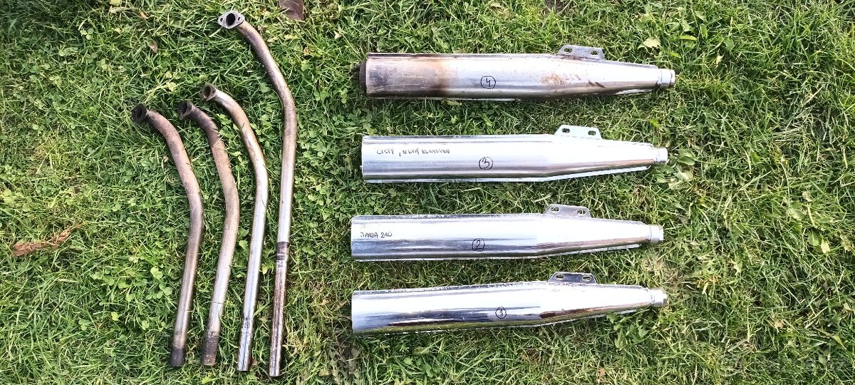Prodám na babettu 210 několik kompletních úplných tlumičů výfuků. Cena za č. 4 je 400 Kč, za pěkné č. 1 a 2 je 600 Kč. Výfuk č. 3 již není. Dále koleno zkrácené za 100 Kč a nezkracene 200 Kč.