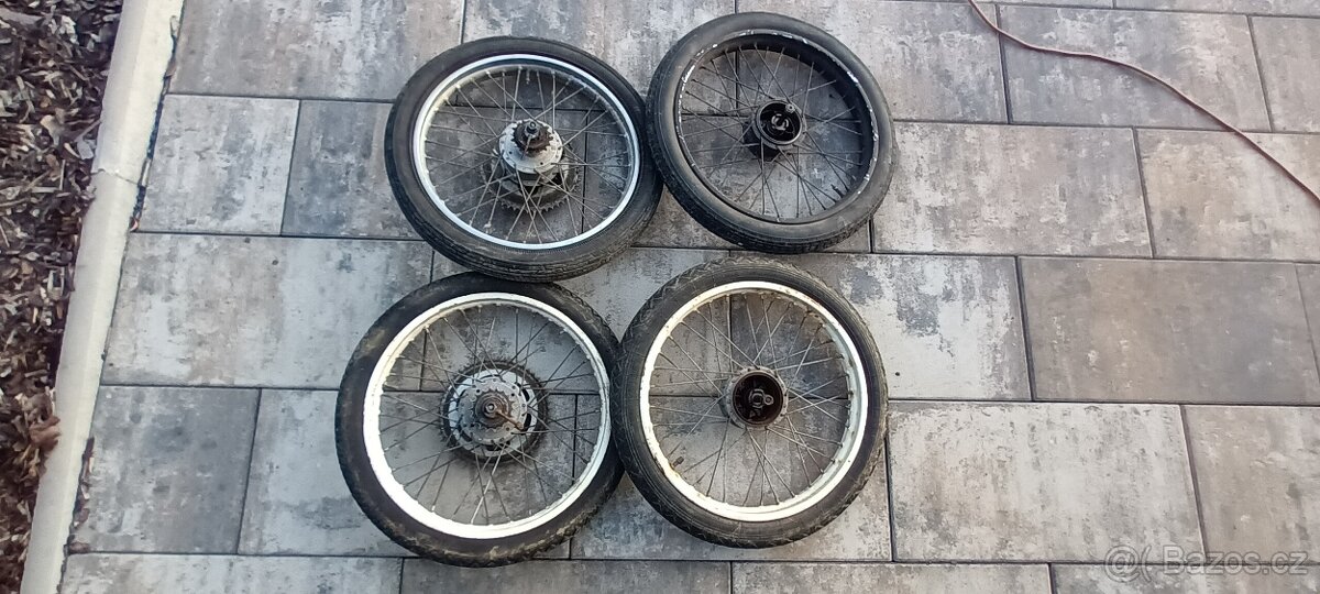 Prodám na babettu 210 přední a zadní kolo. Predni kolo za 750 a zadni za 1000 Kč. Cena 1500 za pár.