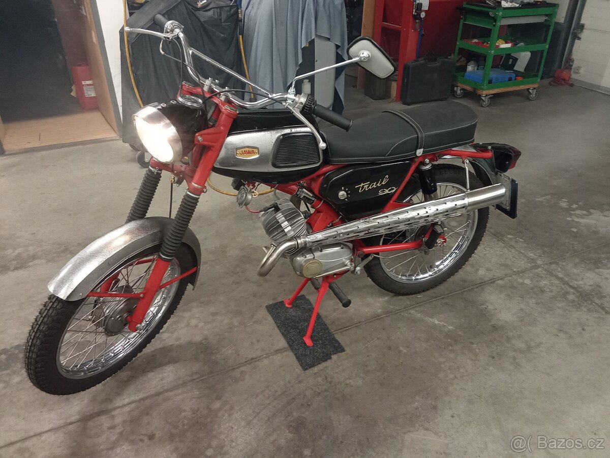 Dobrý den, prodám Jawa 90 Trail včetně TP ,STK. Původně dovoz z Itálie, kompletní GO, vše plně funkční, lak původní mimo (boční kryty a stojan). Chromy původní mimo (ráfky, řidítka) . Více informací na telefonu 607759972. V případě zájmu pouze volat, na dopisování nereaguji, děkuji.