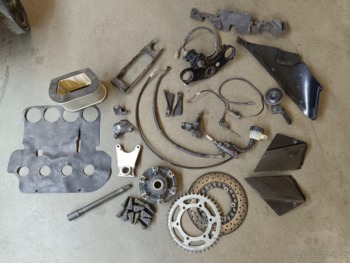 Prodám zbytek dílů na R1 rok 2000 čidla, brzdové pumpy, různé plasty, zadní kotouč, rozetu, kyvku, blatník, přední kolo,sedlo na rok 2003 atd.