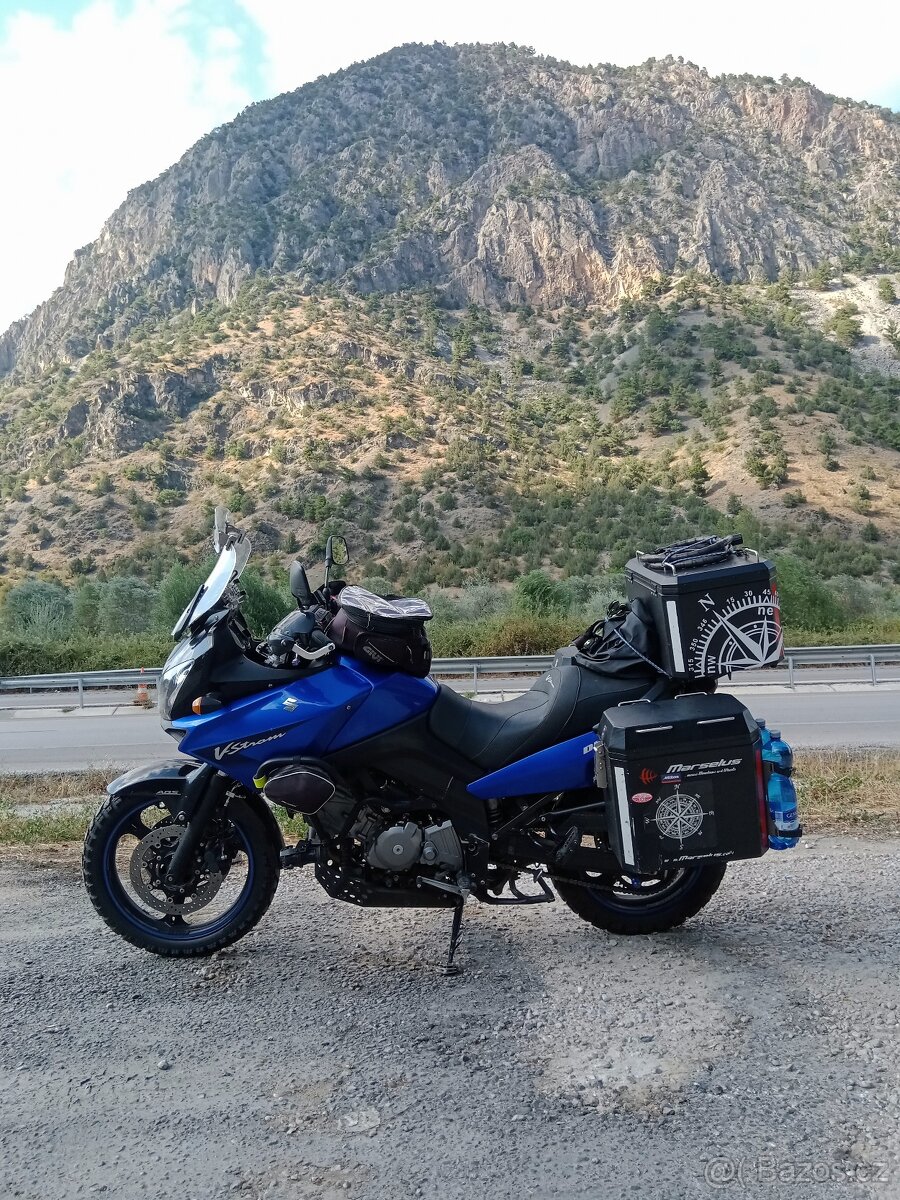 doplňková výbava: vyhřívané rukojeti Oxford, velký padací rám + vnitřní tašky, hlavní stojan, kryty páček rukojetí (kovové), plexištít čirý + nádstavec plexi, masivní spodní kryt motoru + kryty olejového a vodního chladiče značky Marselus, přídavné mlhovky s kryty, držáky kufrů -3x hliníkové kufry + vnitřní brašny, hrazda na řiditkách s kapsou, 12V zásuvka na řiditkách, USB dvoj-zásuvka, držák na telefon, box na nářadí Marselus, držáky lahví 2 ks + držák kanystru PHM. Laděný homologovaný výfuk SCORPIONS. Přešité sedlo, pravidelný servis – minulý rok nová řetězová sada najeto 3 tis. km. Náplně – olej, filtry vzduchový a olejový filtr, nová baterie 2023. Stromek obutý na pneu Mitas E-07.
