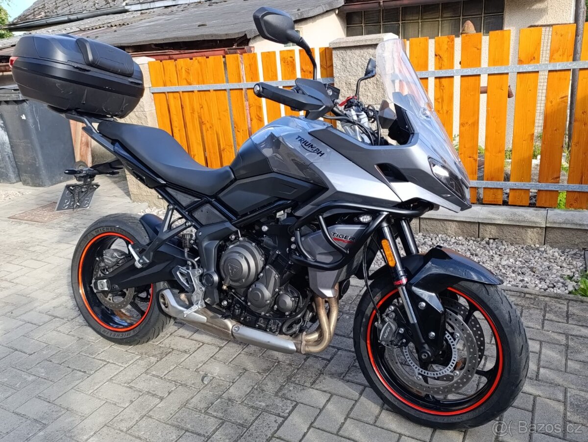 Dobrý den nabízím Triumph Tiger sport 660 rok výroby 2022 najeto 30000 km motorka má ve výbavě padací rámy vyhřívané rukojeti, kufr originál triumph, přidám ještě alu kryt pod motor, není na foto, motorka nevyžaduje žádné investice, cena 167000