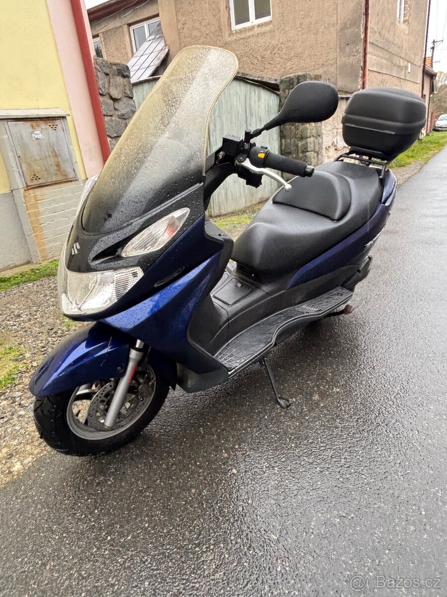 Suzuki burgman 400 r.v. 2004 - [28.12. 2025]Prodám pohodlný spolehlivý Maxiskůtr Suzuki Burgman 400.Najeto 41 240 km. Servis pravidelně,Poslední garančka při 39 680 km.