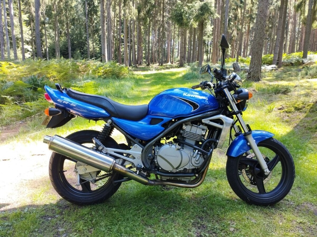 Prodám Kawasaki ER5 ve výjimečném stavu. Najeto 12.700 km. Rok výroby 2006. Verze s nerezovým výfukem. Objem 499 cm³, výkon 36 kW. Doplněny padací rámy. Zakoupena a provozována v ČR. STK do 11/26. V červnu měněný olej + filtr, svíčky a brzdová kapalina. Lehká a dobře ovladatelná motorka.