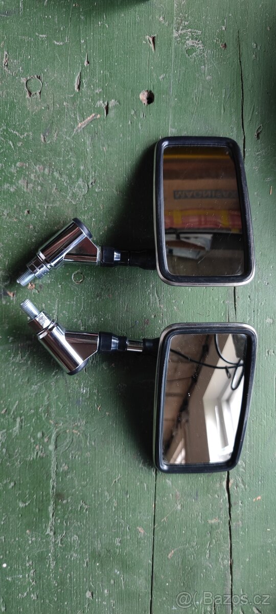 Prodám zpětná zrcátka hranatá, oválná, nepoškozená, zachovalá.