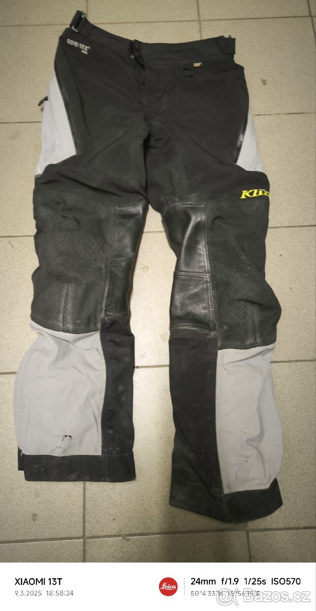 Prodám kalhoty vel 34, kupované 2022, Gore TeX, 3laminat, takže nepromokavé, velké větrací otvory, malá oděrka na pravé nohavici viz foto.