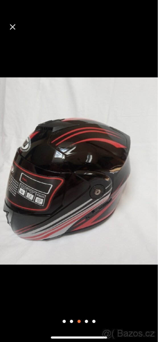Nová výklopná přilba na motorku velikosti L. Velikost helmy je poměrně univerzální. součástí balení jsou rukavice a kukla(šála)
