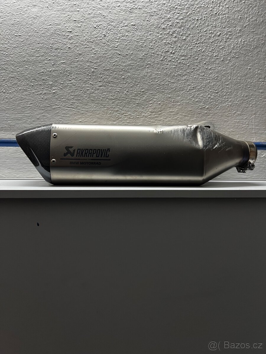 Poškozený tlumič výfuku Akrapovic osm Bmw motorrad, sedřený ale nemá díru , vhodný na Racing atd.