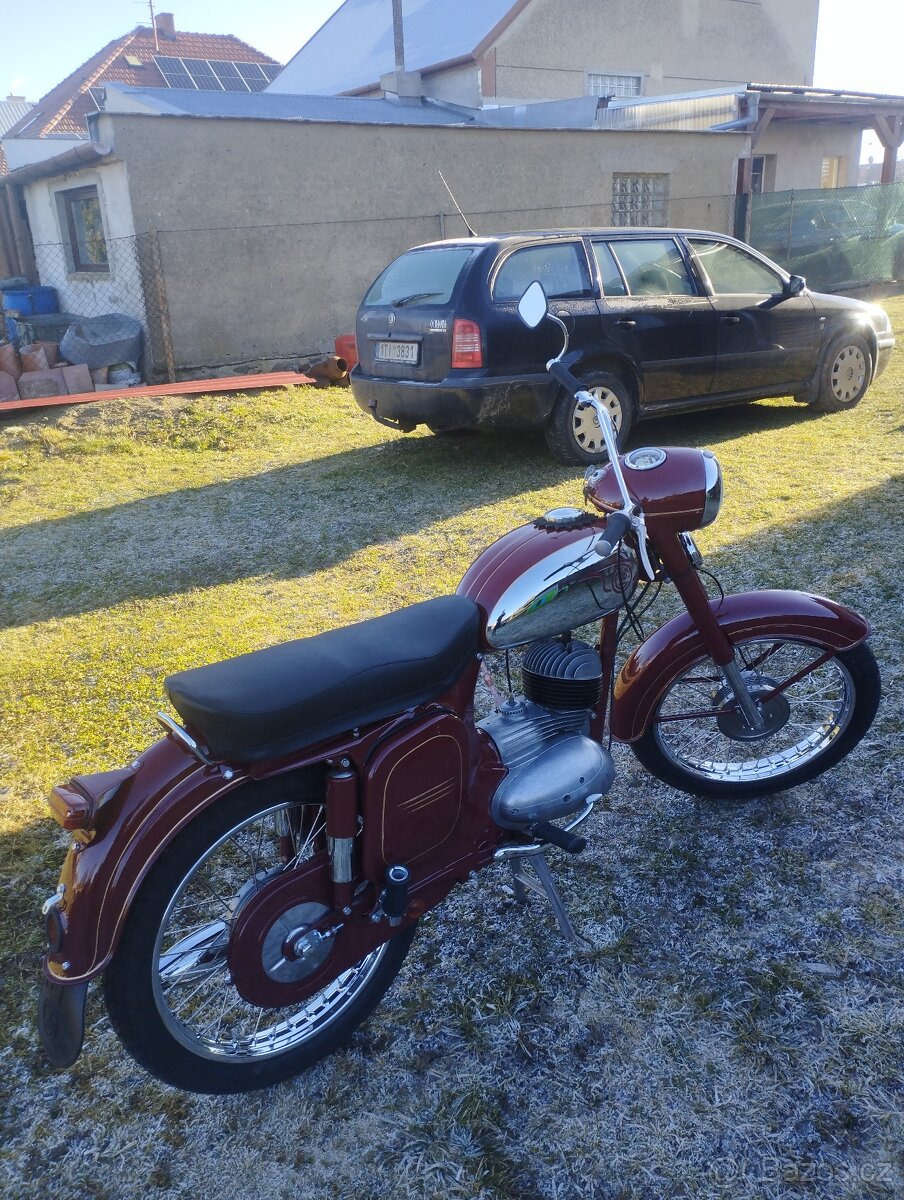 Prodám tuhle športku po kompletní renovaci, jednokusová motorka, nejsou na ní turecké repliky, rok 1966, najeto 3 km , nutno zajet, odhlášeno, štítek má a čísla sedí. Buďto na veterány nebo vystavit.