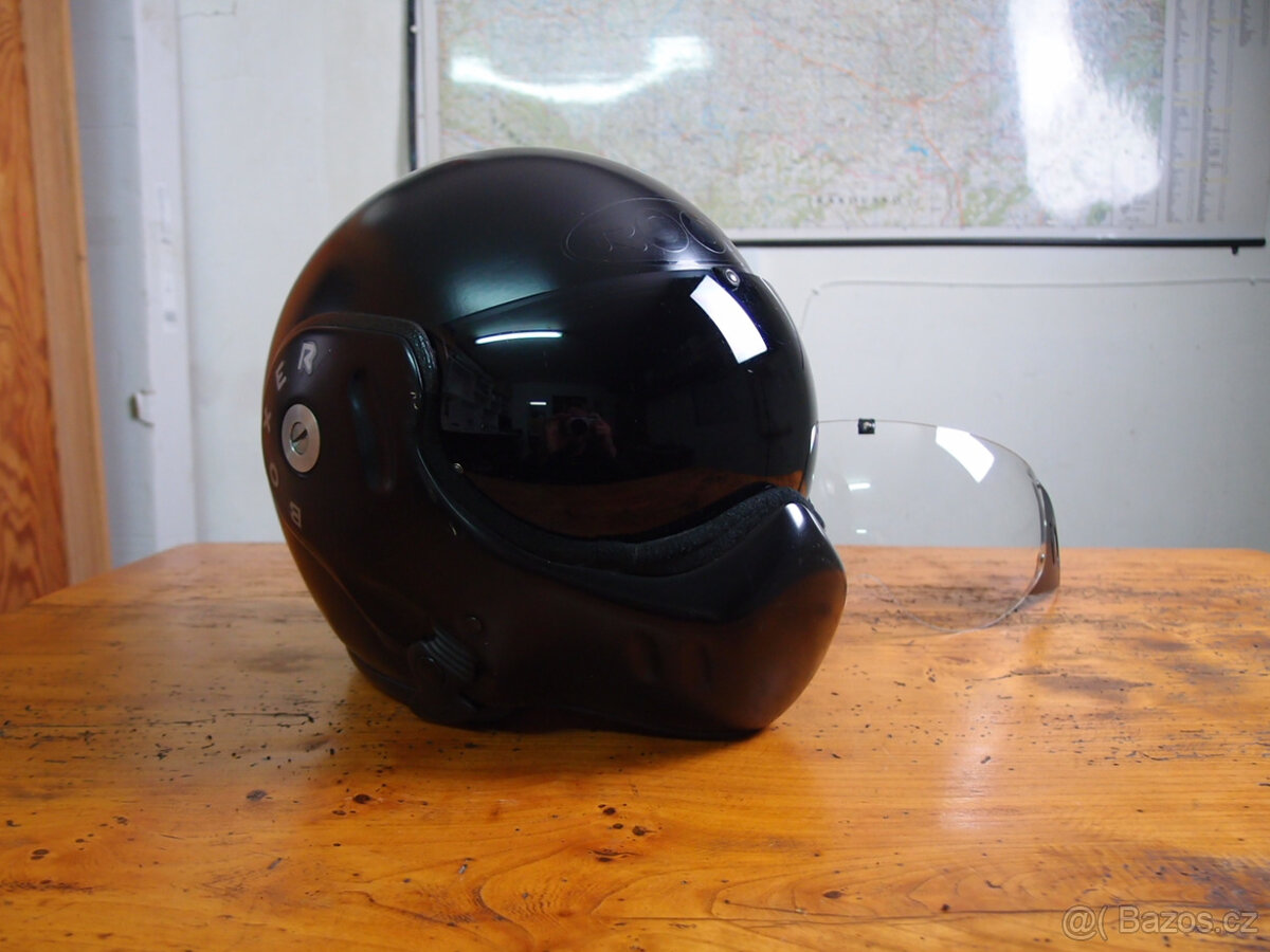 Helma Roof Boxer, velikost M (58), černý a čirý štítek, delší dobu ležela nevyužita, pěnové polstrování nad hlavou se rozpadlo.