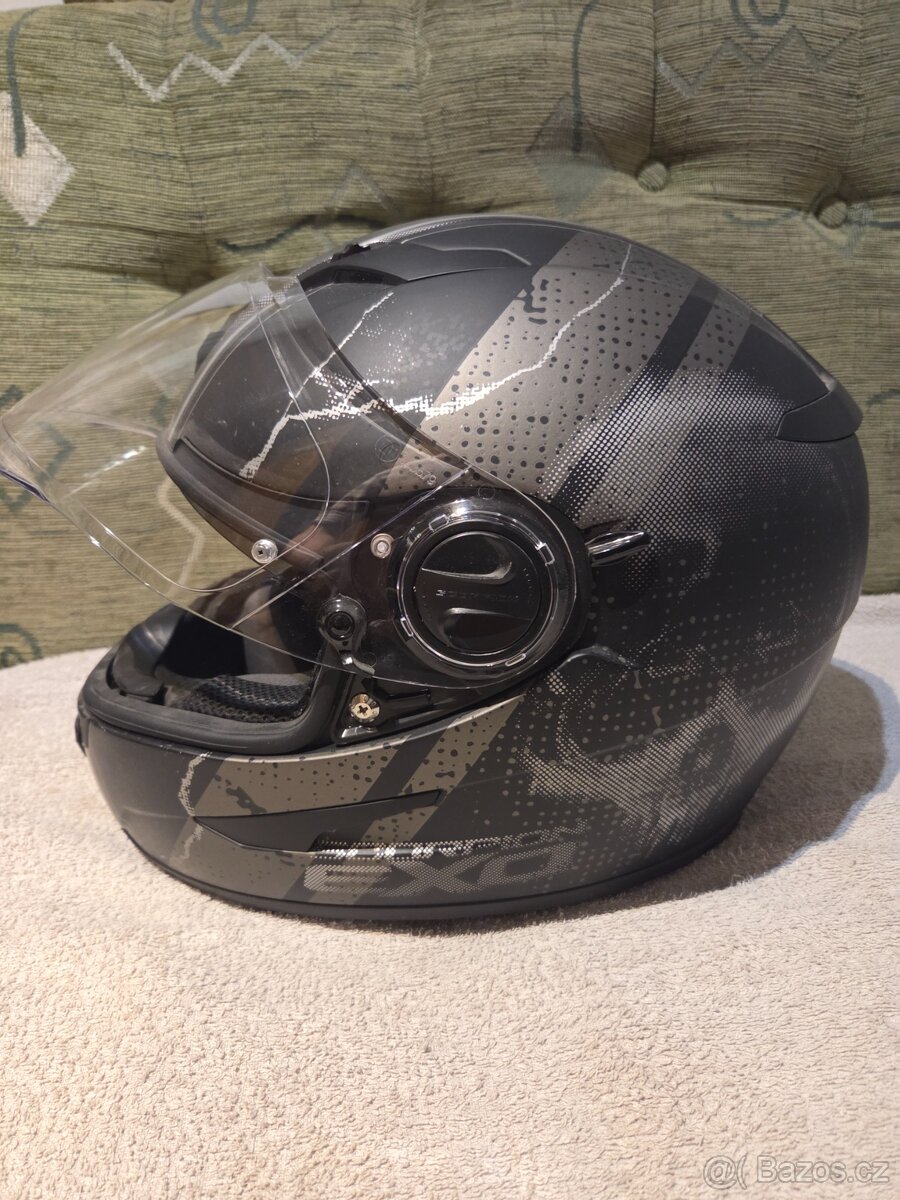 Moto helma - [6.2. 2026]Prodám moto helmu. Prodávám z důvodu prodeje motorky. Helma je téměř nepoužívaná. Velikost L. Jediná vada je na Plexi - foto - k helmě je i druhé čistě čiré Plexi které bylo hned sundáme při pořízení helmy - pořízena za 8000 Kč teď cena 4000 Kč přípa ...