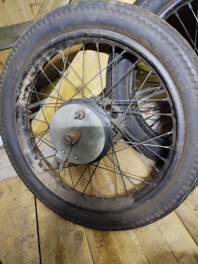 Čz 175 předválečná zadní kolo, malý buben - [11.2. 2026]Čz 175 předválečná zadní kolo, štít si nejsem jistý jestli je z toho ale sedí tam, malý buben průměr 125 mm.