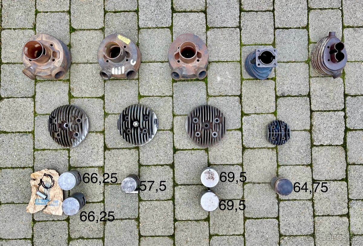 Prodám originální zachovalé válce a písty na Jawa 250 pérák, Jawa 100 Robot. Stav viz foto, v případě zájmu zašlu další. K renovaci bez záruky. Predani Pysely, po dohodě Praha, okolí Benešov nebo pošlu i na dobirku i na Slovensko.