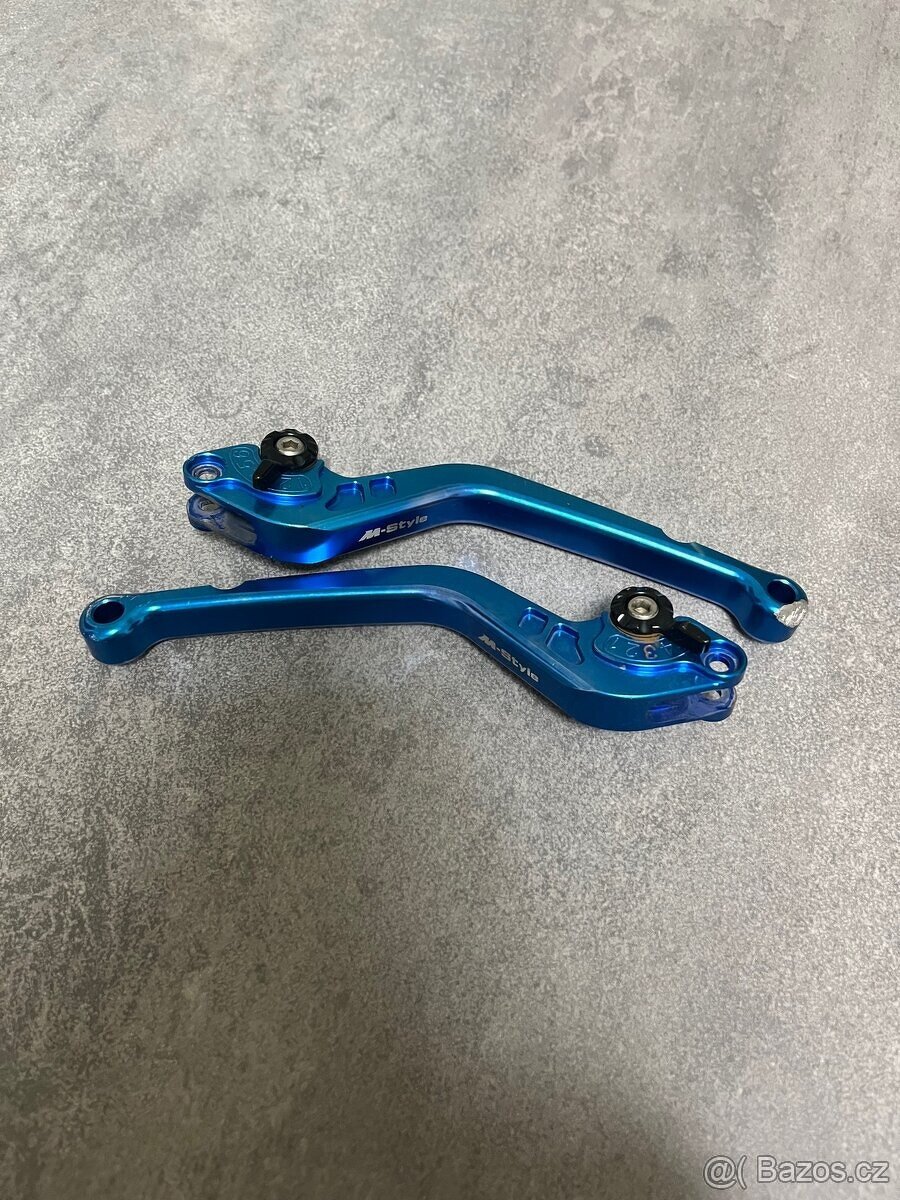 Prodám dlouhé m-style cnc páčky suzuki gsxr 600, v provedení modrá páčka, černý štelovák. Páčka spojky je odřená viz foto. Kupované nové ještě z m-style shopu za 950 Kč.