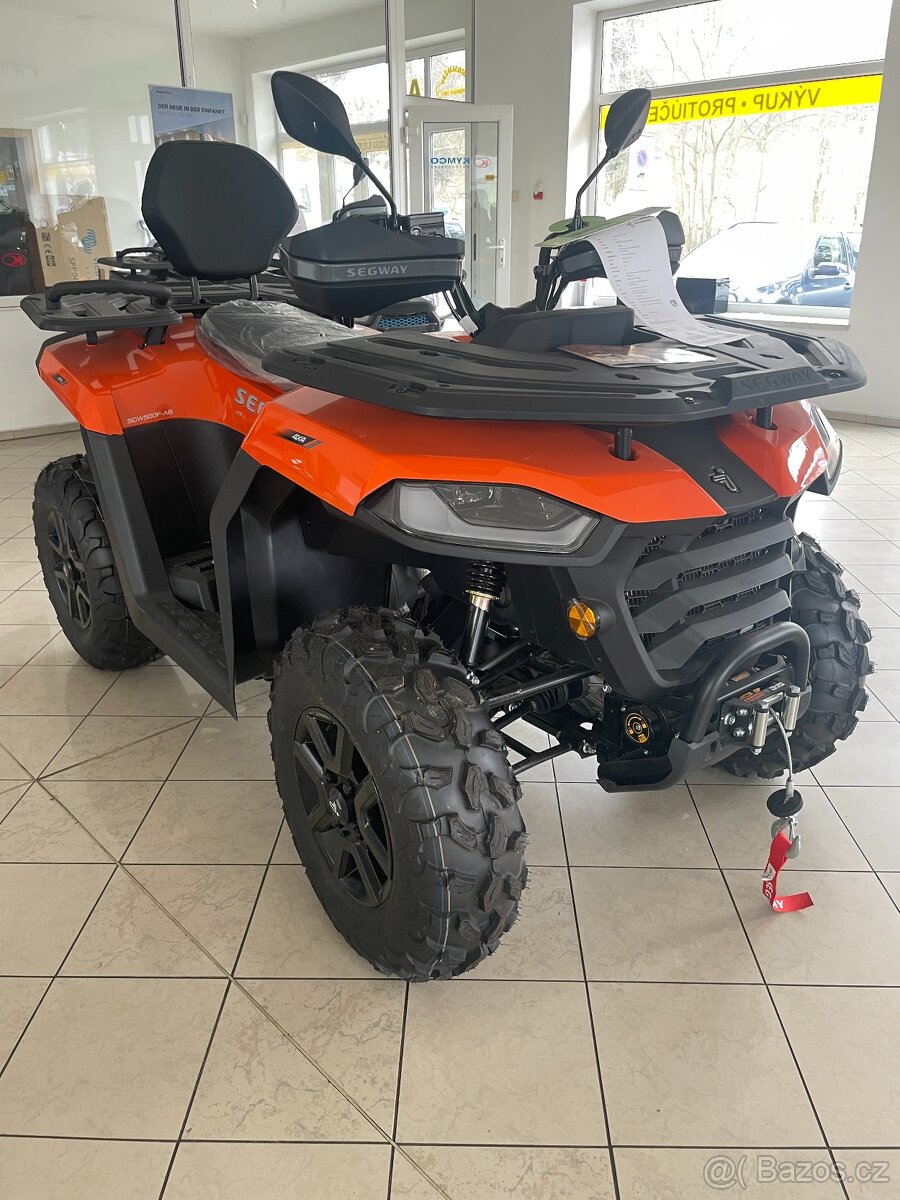 Nová užitková / pracovně-rekreační čtyřkolka s prodlouženým podvozkem, elektrický posilovač řízení EPS, kapalinou chlazený jednoválec 499 cm3 EFI o výkonu 39hp, automatická převodovka P/R/N/L/H, brzdění motorem, pohon 4x4, dvojitá A-ramena vpředu / dvojitá A-ramena se stabilizátorem vzadu, hydraulické tlumiče s progresivními pružinami, přední a zadní ochranné rámy, tažné zařízení, el. naviják 2500 lbs, kovové nosiče vpředu a vzadu, Full-LED osvětlení, prodloužené sedadlo spolujezdce s opěrkou zad, 12V zásuvka, 12" hliníkové disky, 25" pneu, ochranné kryty rukojetí, homologace Euro5