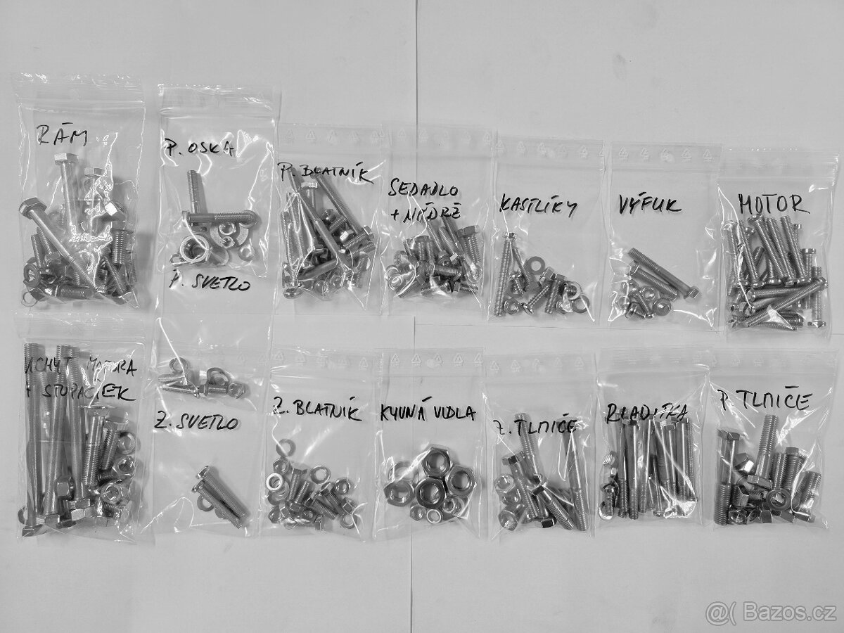 Predám kompletnú sadu skrutiek z leštenej nereze, osky a brzdové tiahlo na simson S51.