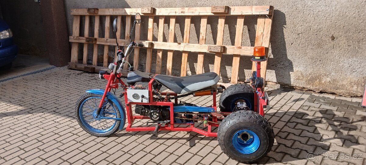 Prodám motorovou tříkolku nově postavenou dle foto.. motor BTS čtyřtaktní...pojezd vpřed, vzad, odstředivá spojka, zadní náprava ze čtyřkolky, couvací světlo a pípák, směrové světla, El. Startér, baterie, světelná signalizace neutralu, hydraulická brzda, led osvětlení... vše nové komponenty... vice informací na tel.733591997