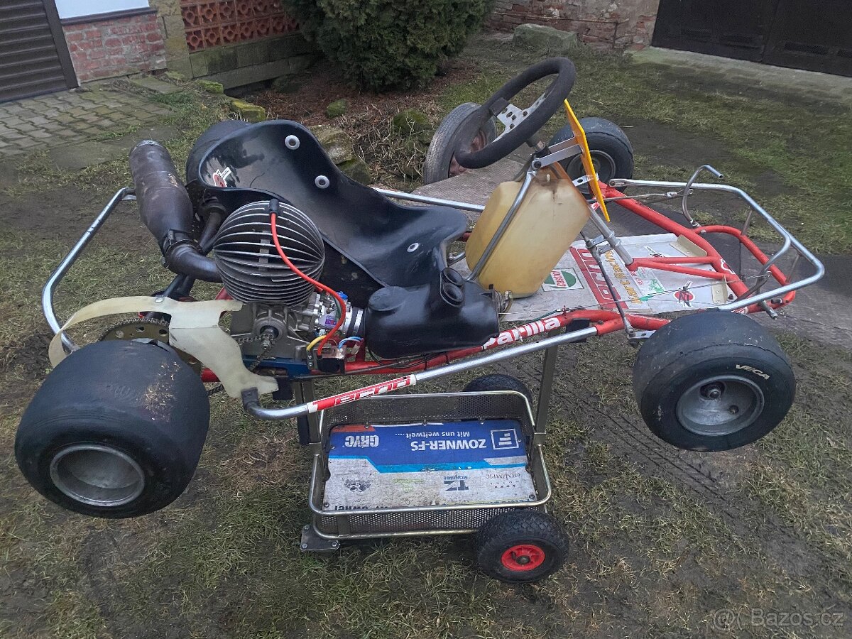 Historická závodní motokára se stálým převodem a motorem Ital Sistem 100cc. Vyměním za motokáru Čz, nebo jiný moto veteran. Vozík není součástí.