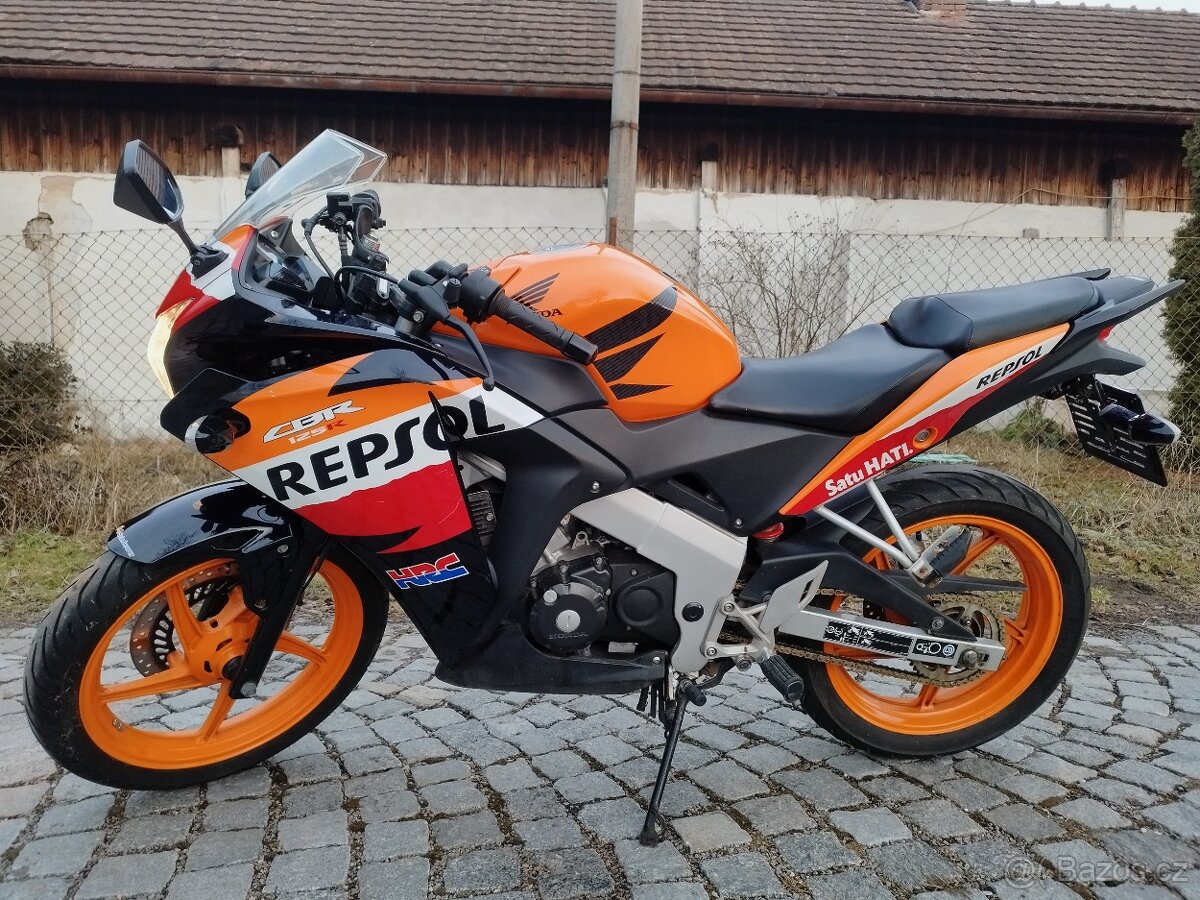 Dobrý den prodám Hondu CBR 125r, rok výroby 2013, k moto je 2x klíč, má novou řetězovou sadu + nový olej v motoru, po technické kontrole - registrace bez problémů, motorka má vstřikování paliva čili pěkná spotřeba 2-3l /100km