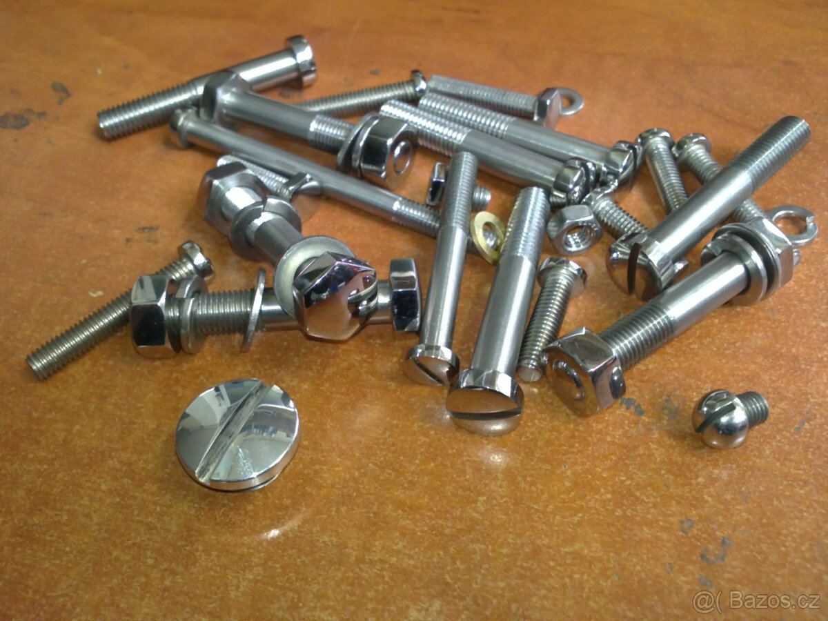 Predám kompletnú sadu skrutiek z leštenej nereze na veterany jawa a čz. Sada obsahuje vačšinou vyrábané skrutky podla originálu na motor a karosériu, dodržané jemné stúpania, vyrábané skrutky sú na 14 šest hran, ostatné štandardné skrutky sú tiež z leštenej nereze! V ponuke mám aj sadu kde sú všetky skrutky vyrábané podla originálu ale len v prevedení pozinkovaná ocel.