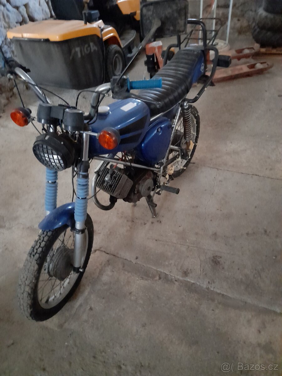 Suzuki TS 50 S TP - [24.12. 2025]dobry prodam suzuki ts 50 2t jede docela dobre kolem 70kmh 6kvalt chybi nakopavacka takze na roztlaceni startovat ale jinak vse funguje r 1992 rychle jednani =sleva ma nemecke tp a knizku