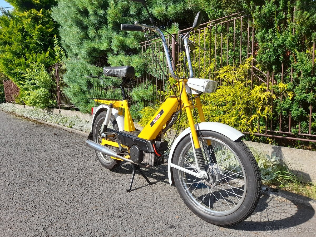 --- Je k ní kartička. Protože nějakou dobu Babetta nejela, tak je určena k zprovoznění, renovaci apod.. Motor jde protočit.