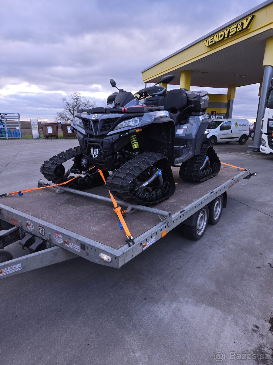 Prodám čtyřkolku CF moto gladiator 1000 cm3, 50 kW, rok výroby 2023,najeto 900 km. Nikdy nejezdila v blátě, využívám na horách. Jezdí skvěle. Prodám se sněžnými pásy Camso, mají najeto cca 500 km, jako nové. Důvod prodeje nevyužití. Koupil jsem šestimístnou čtyřkolku s kabinou. Přídavná přední led velké světlo na rámu, přídavná světla oranžové stroboskopy. Přední rám + zadní rám, zadní box uzamykatelný a přední box uzamykatelný. Je po výměně olejů v motoru, převodovce a diferenciálů, filtry, promazání ramen. SUPER STAV. Držak na lyže v hodnotě 15.000 Kč, cena 321.860 Kč s DPH, cena 266.000 Kč bez DPH. Na čtyřkolku mám i originál krycí plachtu.