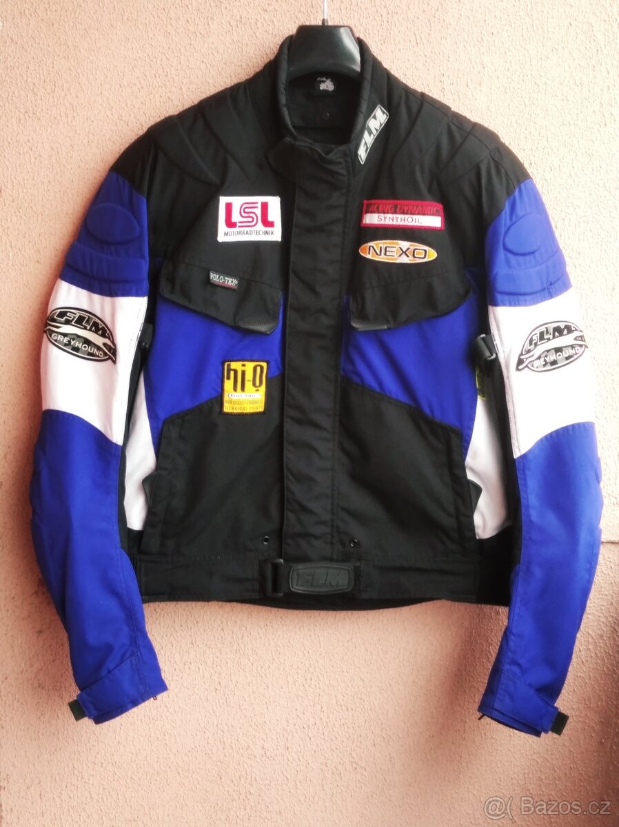 Bunda FLM,velikost L,obvod hrudníku 120cm,délka 65cm,rukáv 67cm-mereno od švu na rameni,koncové zipy rukávů,kapsy,zipy,kompletní chrániče,zapínání na zip+suchý zip,velmi trendy a zachovala.