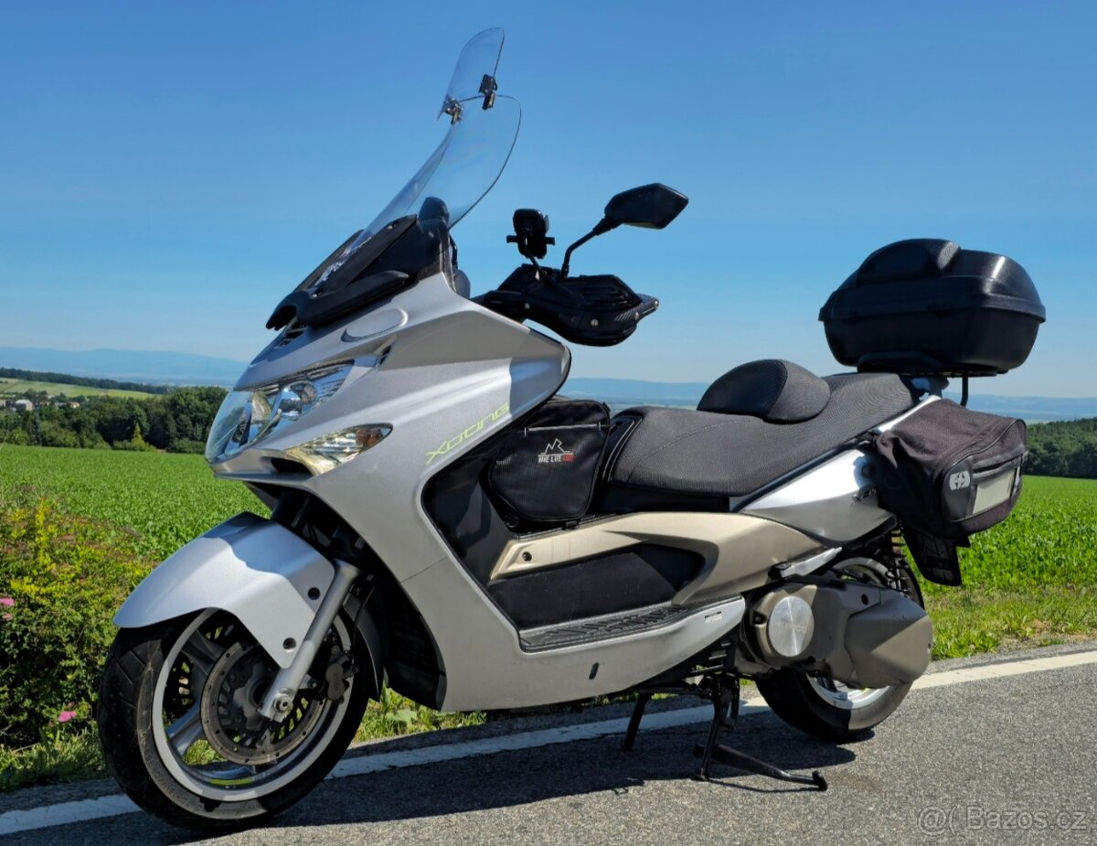 Kymco Xciting 500i ABS. Nosič kufru...nové Gripy, tašky, boční stupačky, držák telefonu a více doplňků, bližší info osobně. Nebouraný. Spotřeba cca kolem 3,8 v benzinu. Zákonné pojištění cca 600 Kč. Velký kufr pod sedlem. Jedná se o jeden z nejspolehlivějších skútrů na trhu.