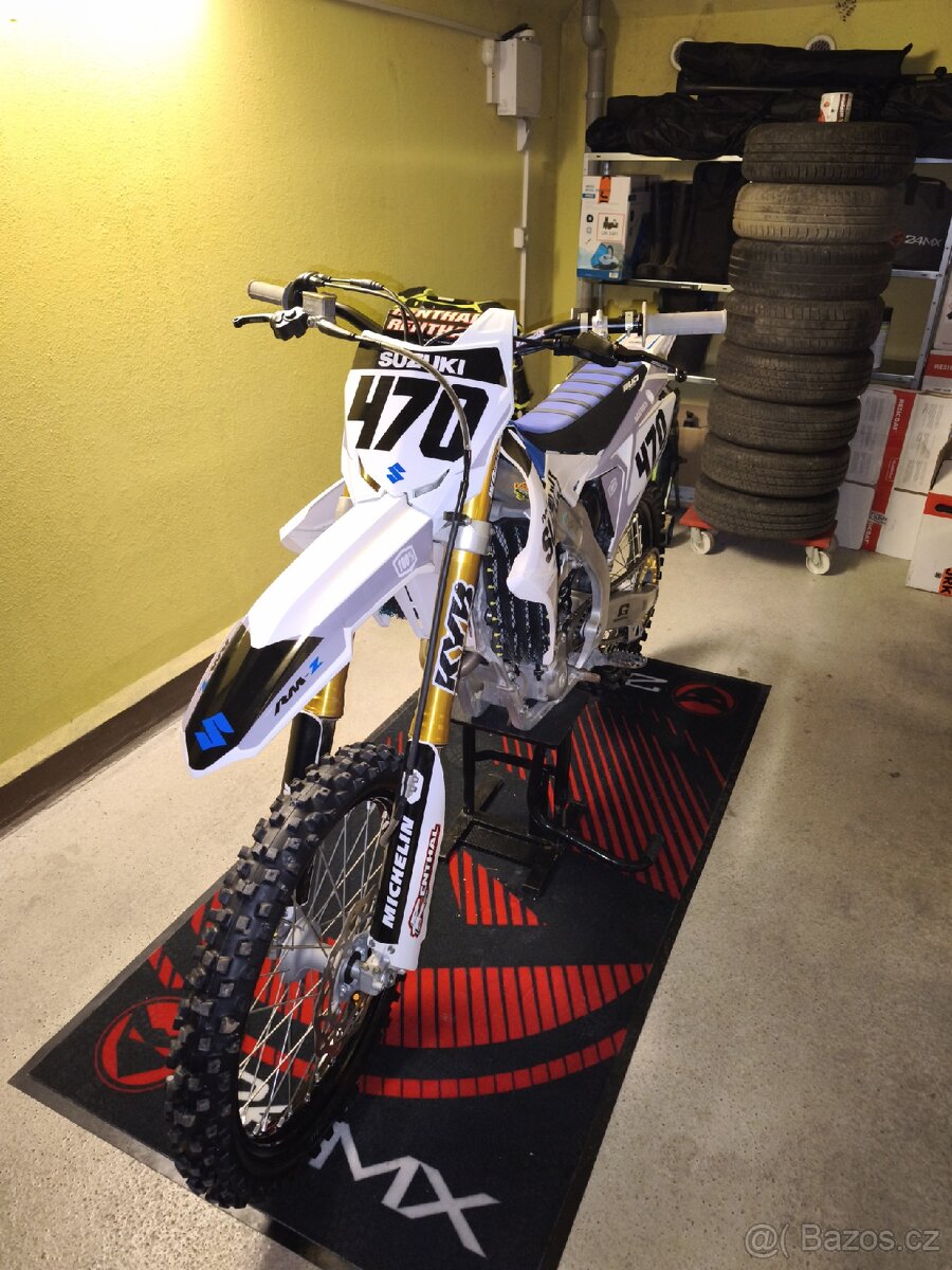 Prodám Suzuki RM-Z 250 r.v. 2023. 48 mth, motor nerozebrán, jen kontrola ventilových vůli. Nahradí díly, mazání, filtry, atd. (foto) + přidám ještě přední destičky a horní uložení zadního tlumiče. Ježděno hobby. Z origo výfukem 90k. Víc info SZ 😉